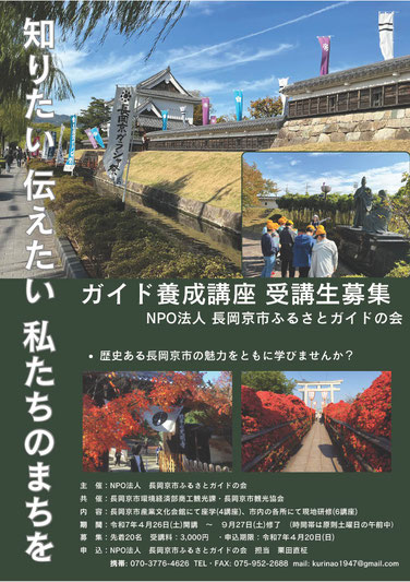 長岡京市について学びたい方、ガイド活動に興味のある方は、ぜひ受講ください!